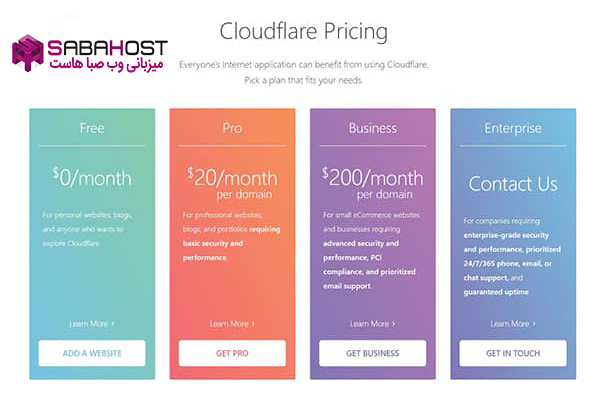 اگر قصد خرید سرویس های دیگر کلودفلر را دارید و نمیخواهید از سرویس های رایگان این سیستم استفاده کنید، با توجه به نوسان دلار بهتر است از سایت های ارائه دهنده مسترکارت یک مسترکارت تهیه کرده و آن را شارژ کنید و به راحتی از سایت کلوفلر پلن های پولی آن را خریداری کنید که لیست قیمت آنها را در تصویر زیر می توانید مشاهده کنید. [caption id="attachment_8259" width="600"]